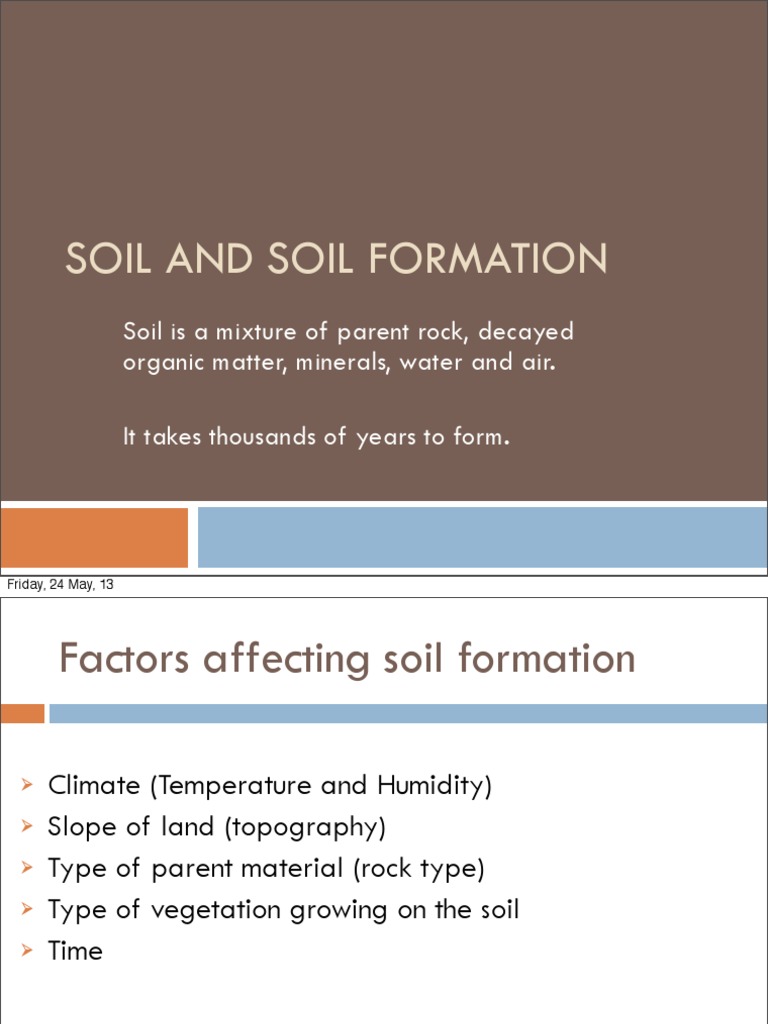 Soil formation factors atmospheric climate and weather conditions soil climate landform and mottles 6. contractors and engineers can have different definitions. Time acts on soil formation in two ways: Are rich and fertile because they are well supplied with humus. The five factors of soil formation soil is the unconsolidated mineral or organic material on the surface of the earth that has been subjected to and shows effects of :